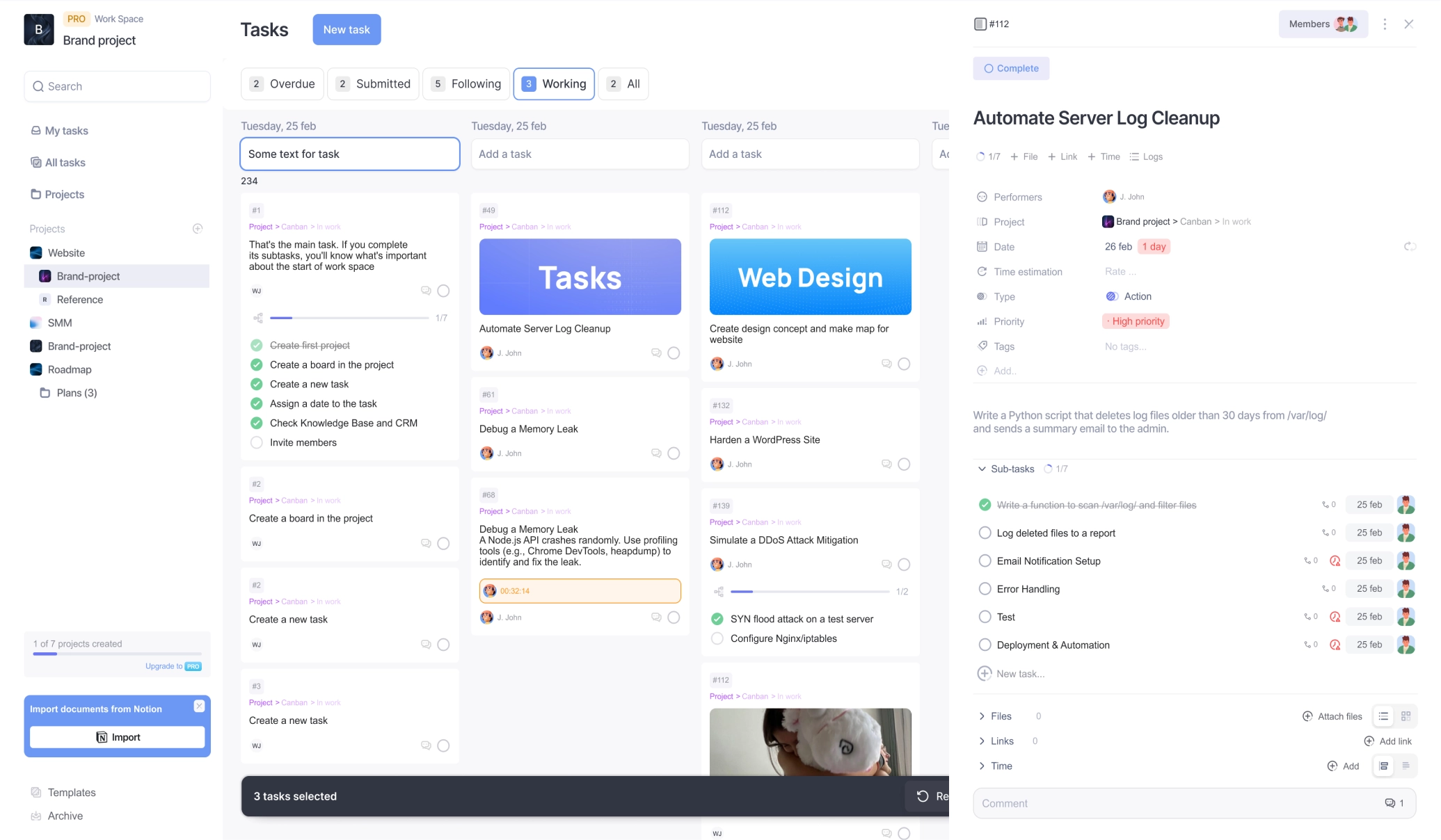 This is where your workflow thrives. Every project is a universe, every task a step forward. Plan your day, conquer your goals